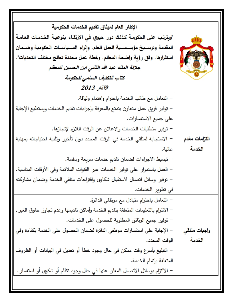 • الإطار العام لميثاق تقديم الخدمات الحكومية