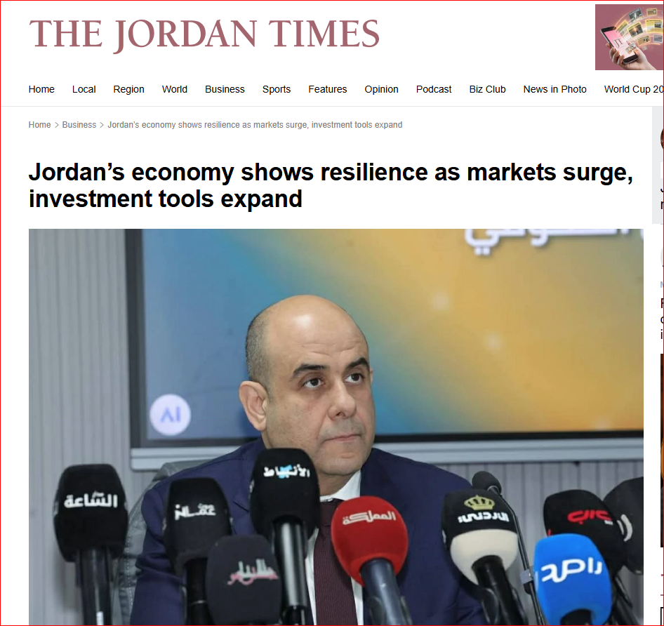 14-نيسان-2026 Jordan’s economy shows resilience as markets surge, investment tools expand Chairperson of the Jordan Securities Commission (JSC), Emad Abu Haltam, on ...