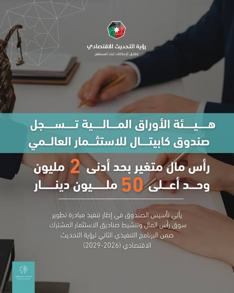 أعلنت هيئة الأوراق المالية الأردنية عن موافقة مجلس مفوضيها اليوم الأربعاء، على تسجيل صندوق كابيتال للاستثمار العالمي الذي تم تأسيسه من قبل شركة المال الأردني للاستثمار والوساطة ...
